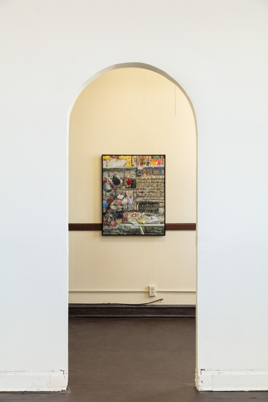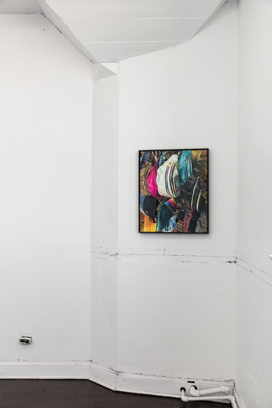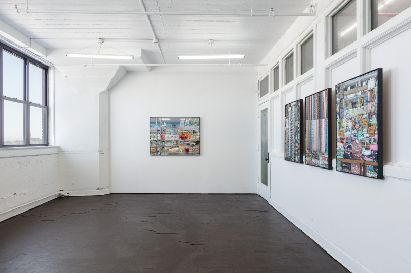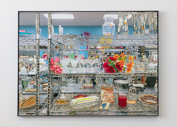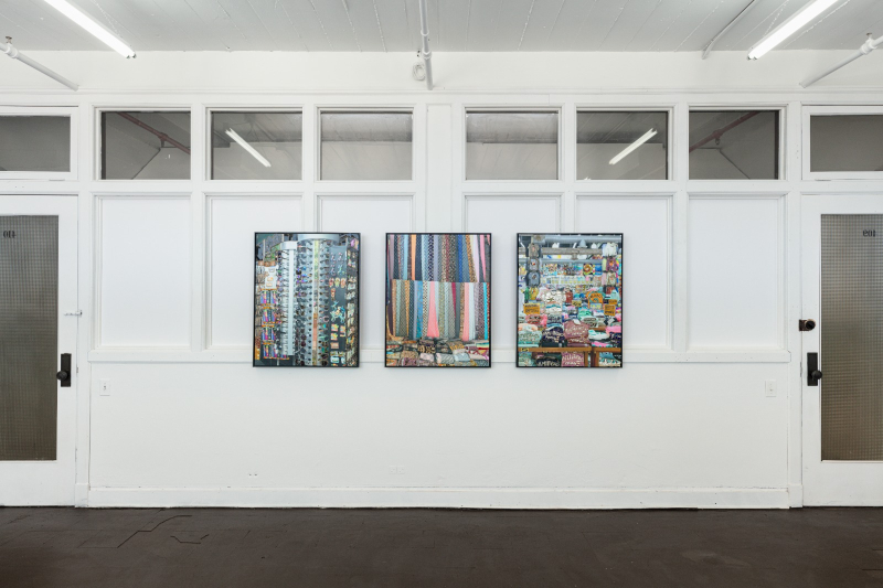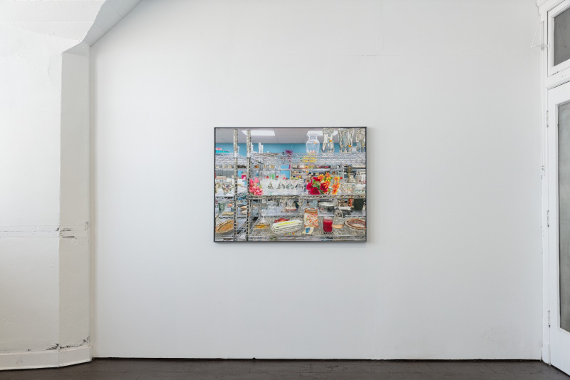 The title of the show, Kopf Kino (translated as “head movie”), refers to a slippage wherein the mind is agitated by this sensory overload, causing a separation between reality and perception: a disassociation that creates a fissure in ones mind—and which is represented in the trompe-l'œil qualities of the work and the retail landscapes that the photographs capture.